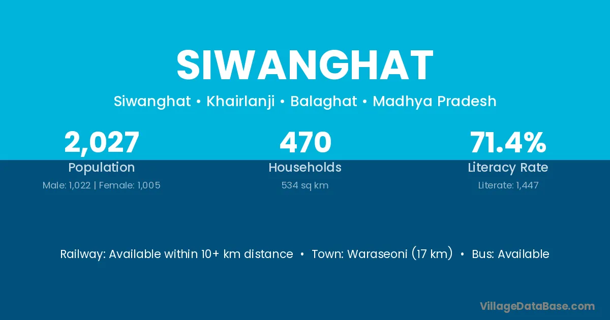 Waraseoni (17 km) is the nearest town to Siwanghat village for major economic activities and is located approximately 17 km away.