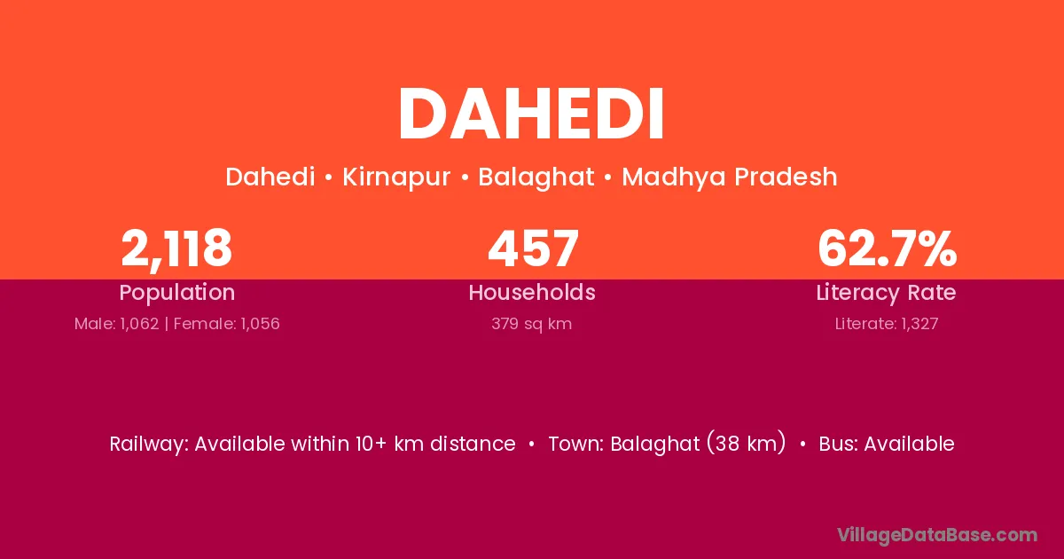 Balaghat (38 km) is the nearest town to Dahedi village for major economic activities and is located approximately 38 km away.