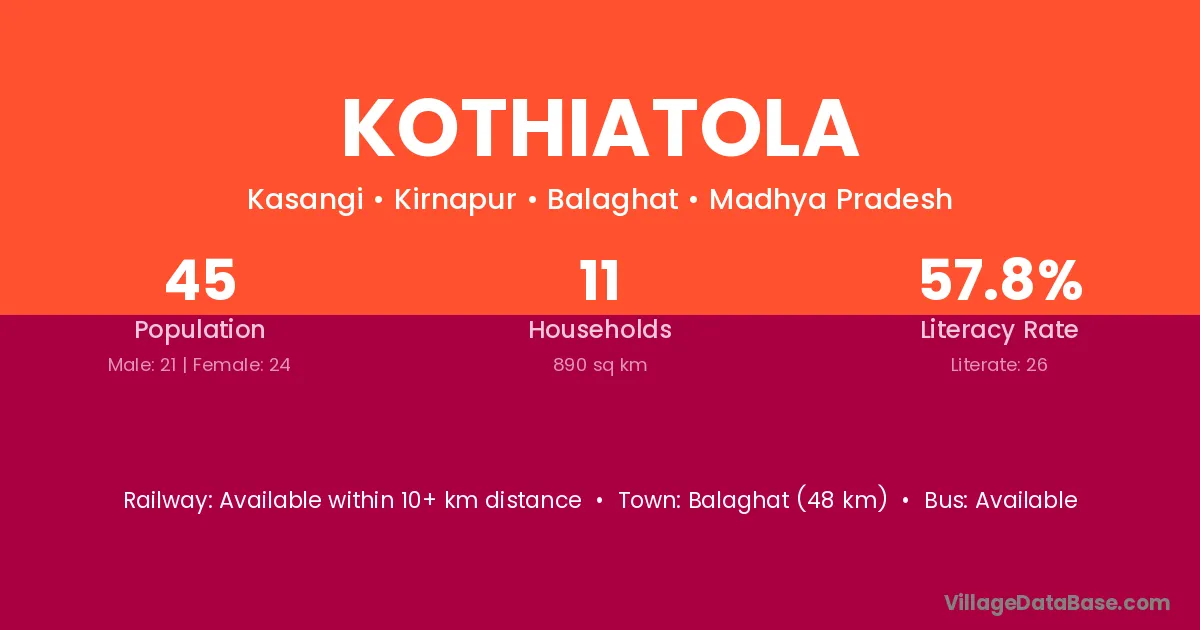 Kothiatola village has a total population of 45 people, of which 21 are males and 24 are females.