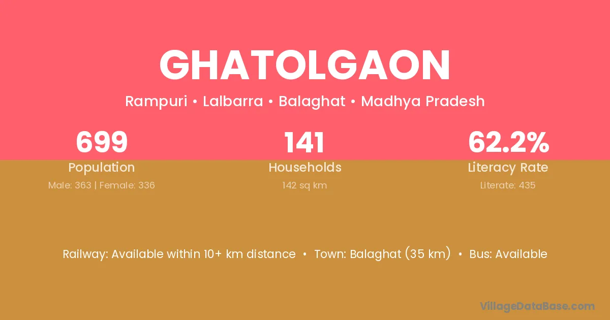 Ghatolgaon village has a total population of 699 people, of which 363 are males and 336 are females.
