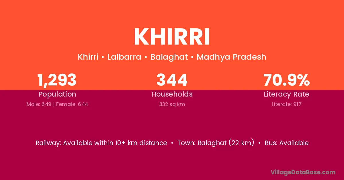 Balaghat (22 km) is the nearest town to Khirri village for major economic activities and is located approximately 22 km away.