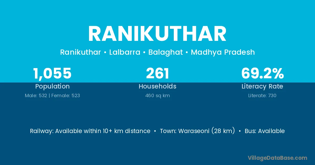 Waraseoni (28 km) is the nearest town to Ranikuthar village for major economic activities and is located approximately 28 km away.