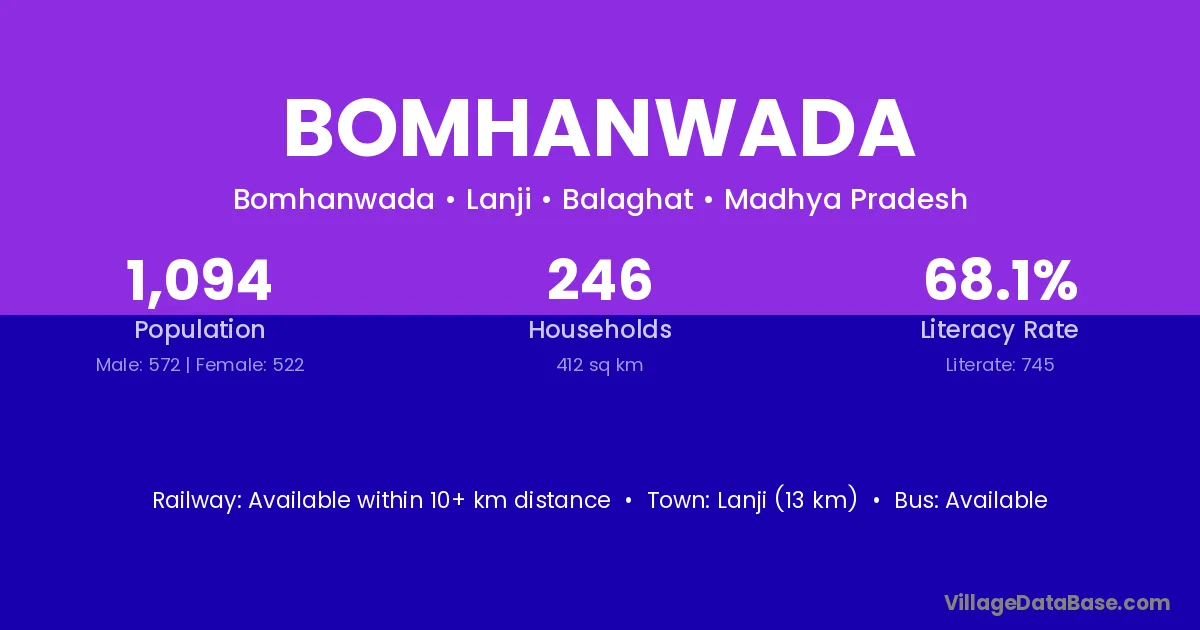 Lanji (13 km) is the nearest town to Bomhanwada village for major economic activities and is located approximately 13 km away.