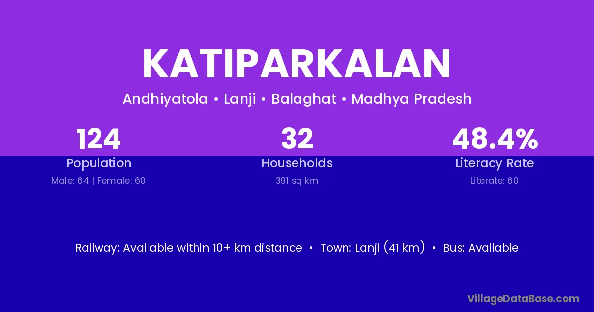 Lanji (41 km) is the nearest town to Katiparkalan village for major economic activities and is located approximately 41 km away.