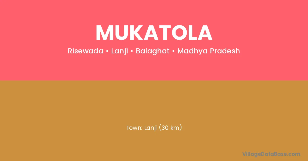 Lanji (30 km) is the nearest town to Mukatola village for major economic activities and is located approximately 30 km away.
