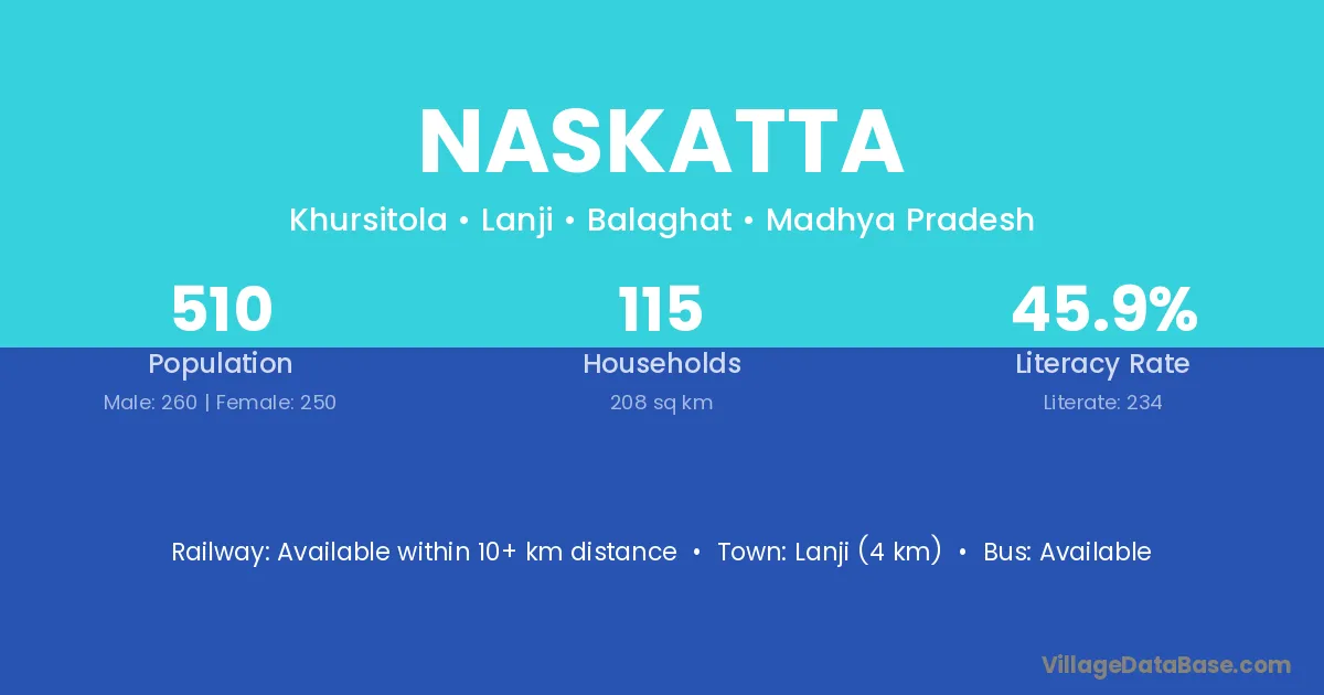 Lanji (4 km) is the nearest town to Naskatta village for major economic activities and is located approximately 4 km away.