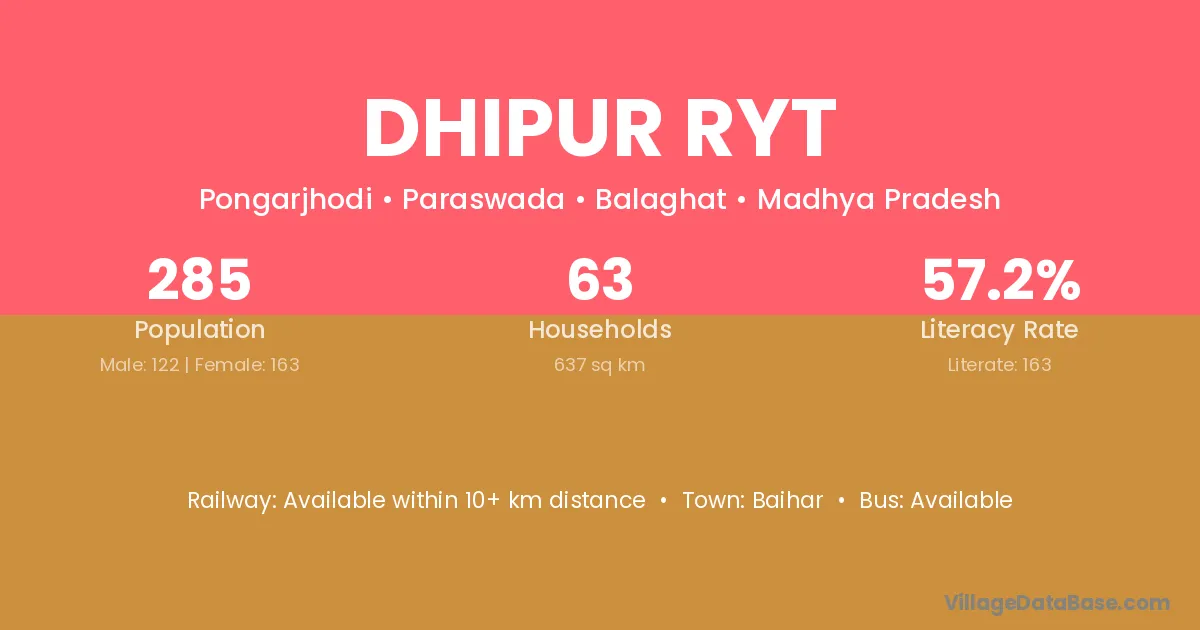 Baihar is the nearest town to Dhipur Ryt village for major economic activities