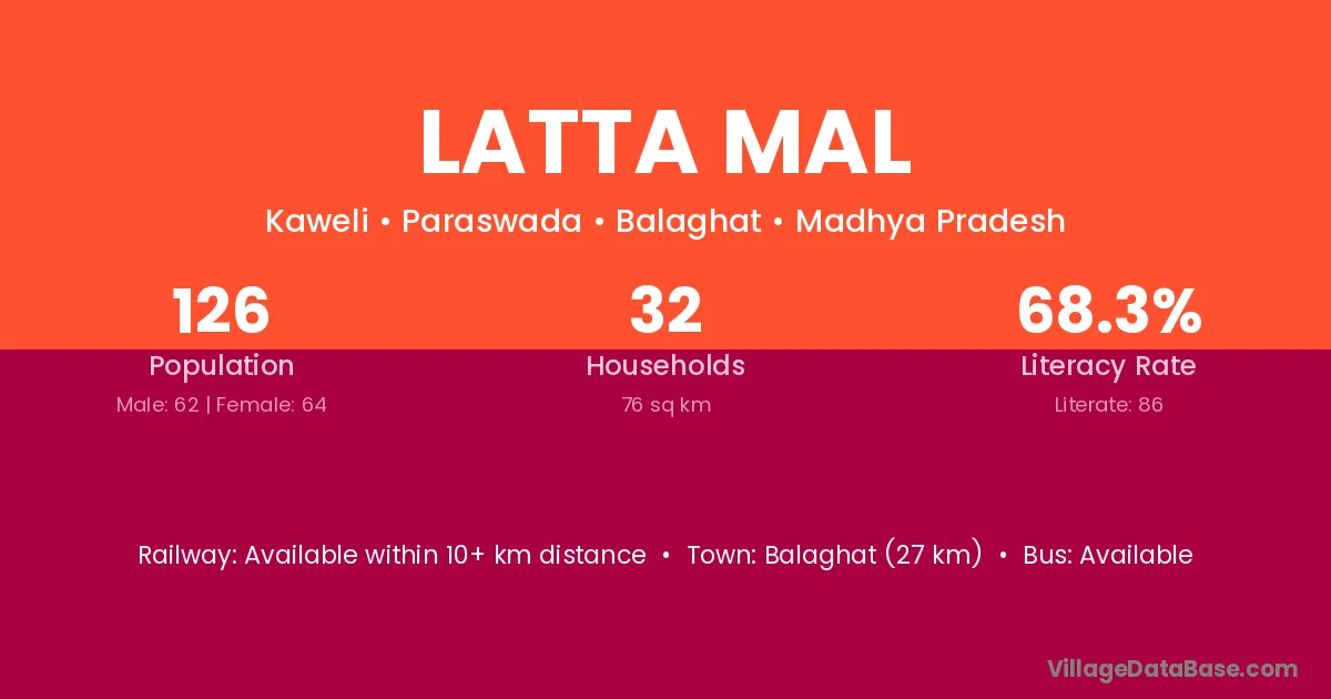 Balaghat (27 km) is the nearest town to Latta Mal village for major economic activities and is located approximately 27 km away.