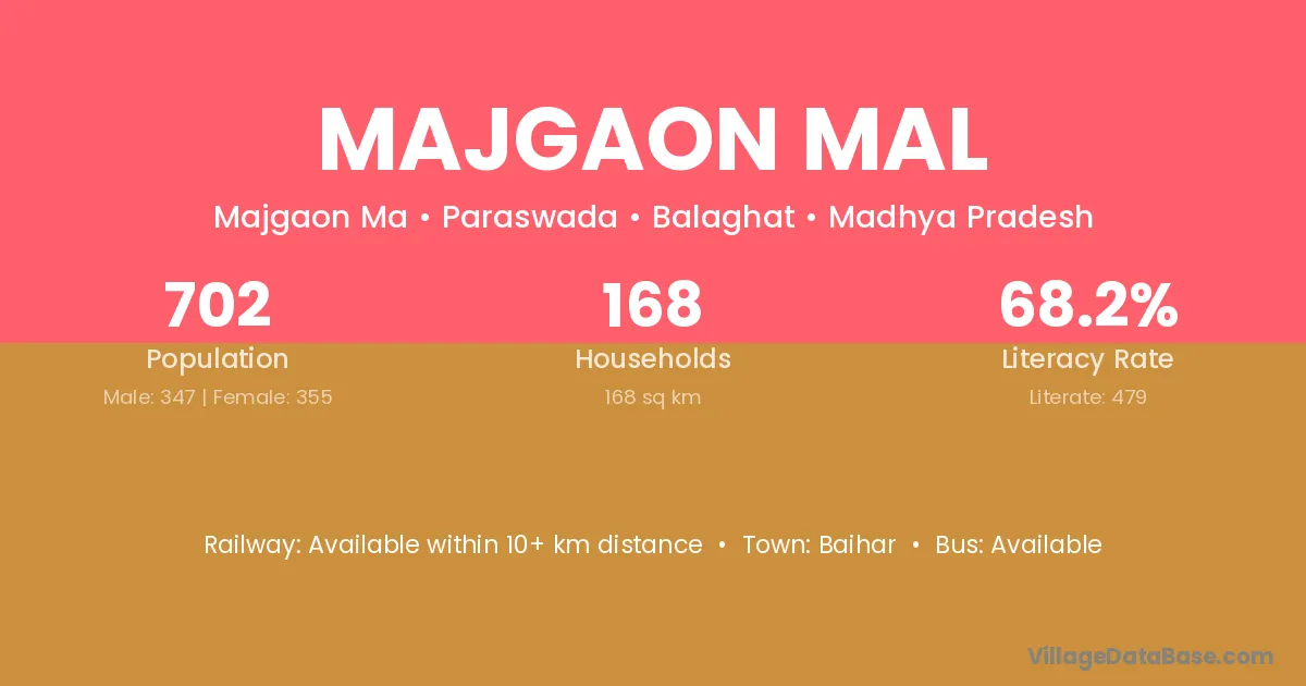 Majgaon Mal village has a total population of 702 people, of which 347 are males and 355 are females.