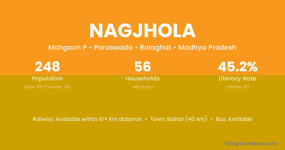Baihar (40 km) is the nearest town to Nagjhola village for major economic activities and is located approximately 40 km away.