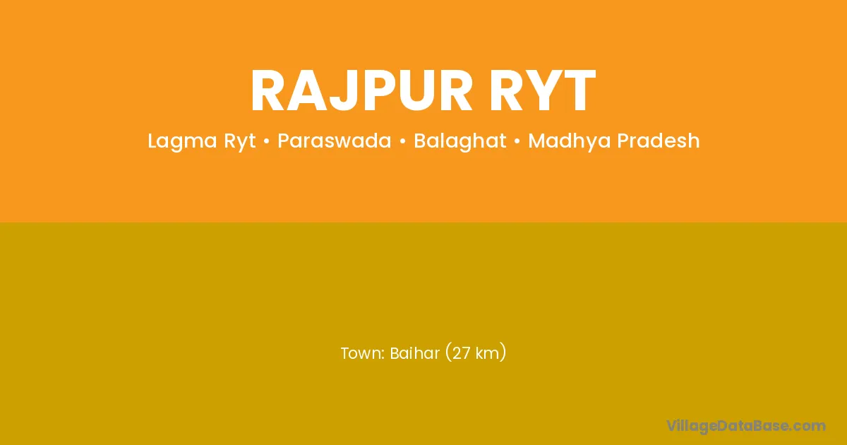 Baihar (27 km) is the nearest town to Rajpur Ryt village for major economic activities and is located approximately 27 km away.