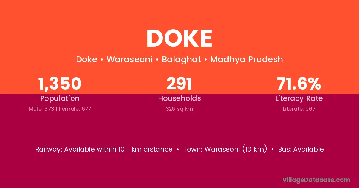 Waraseoni (13 km) is the nearest town to Doke village for major economic activities and is located approximately 13 km away.