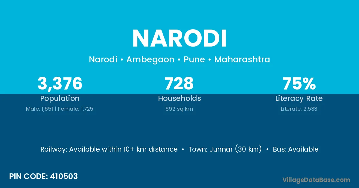 Waraseoni (17 km) is the nearest town to Narodi village for major economic activities and is located approximately 17 km away.