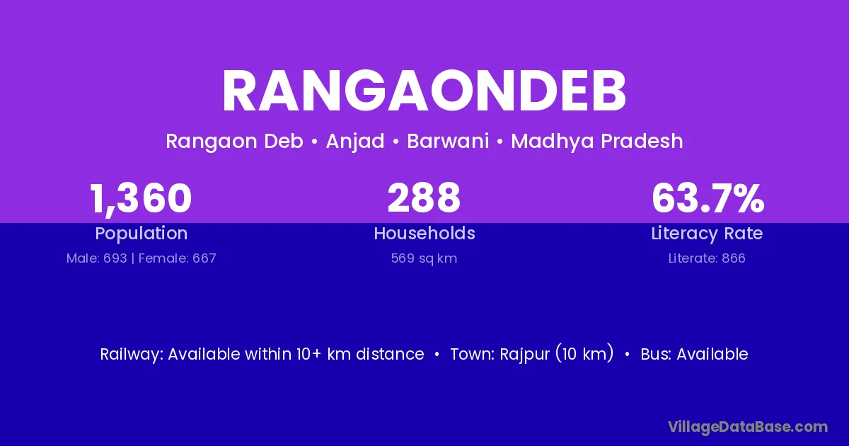 Rangaondeb village has a total population of 1,360 people, of which 693 are males and 667 are females.