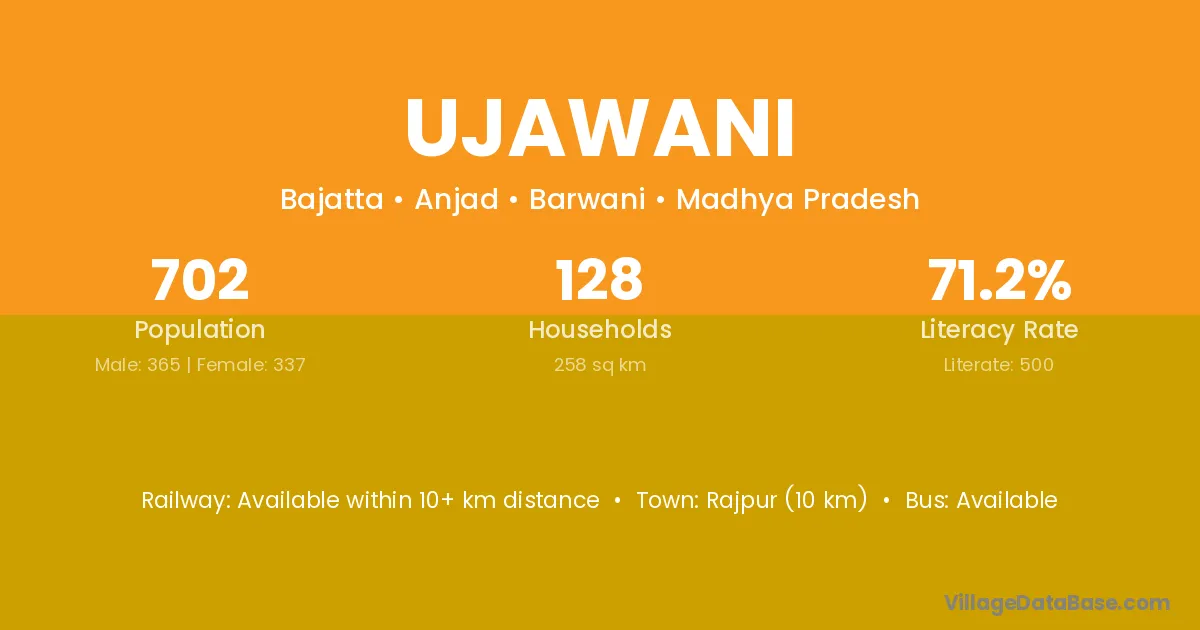 Rajpur (10 km) is the nearest town to Ujawani village for major economic activities and is located approximately 10 km away.