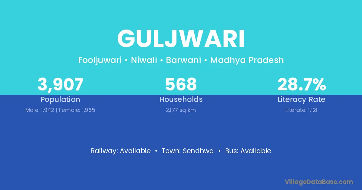 Sendhwa is the nearest town to Guljwari village for major economic activities