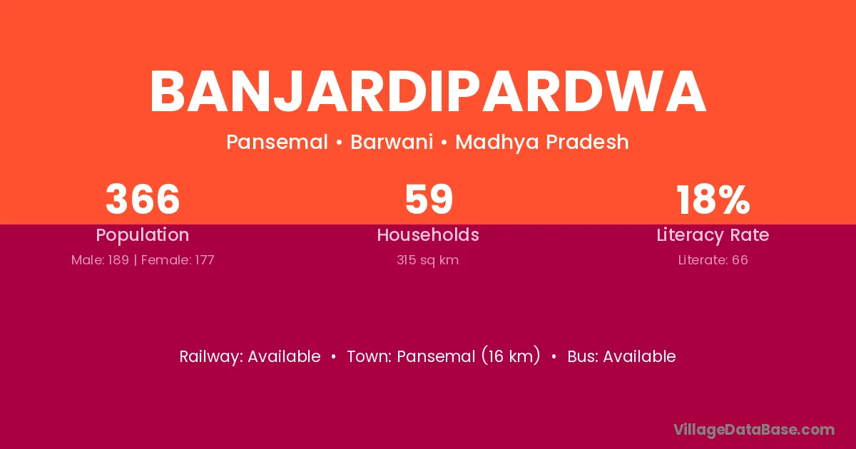 Banjardipardwa village has a total population of 366 people, of which 189 are males and 177 are females.