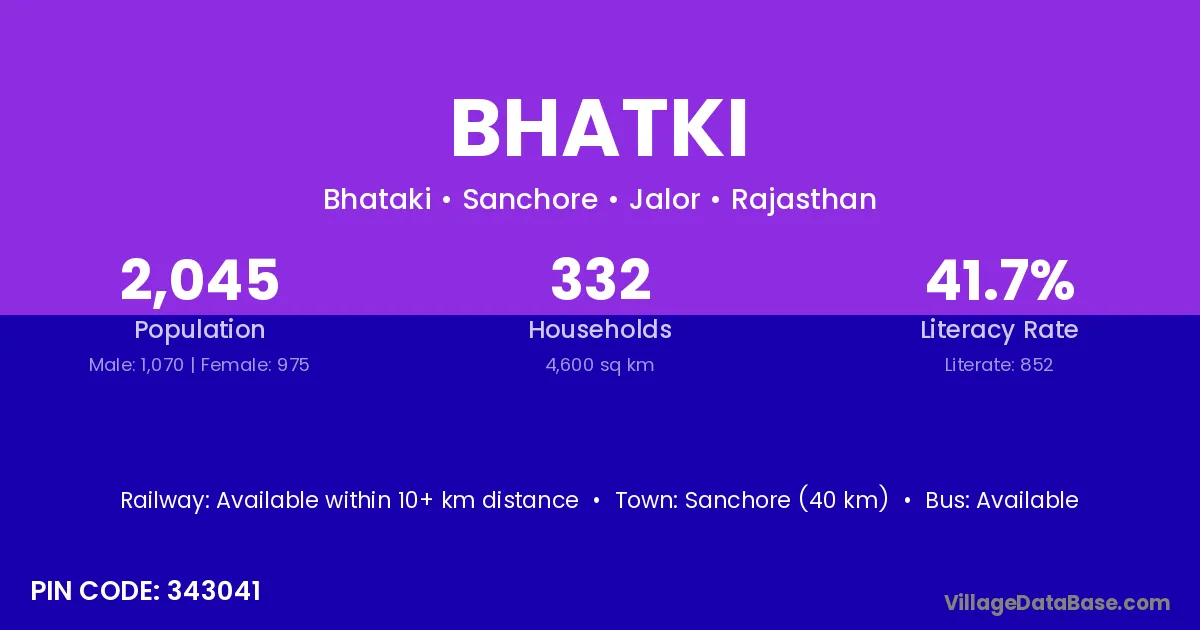 Khetia (5 km) is the nearest town to Bhatki village for major economic activities and is located approximately 5 km away.