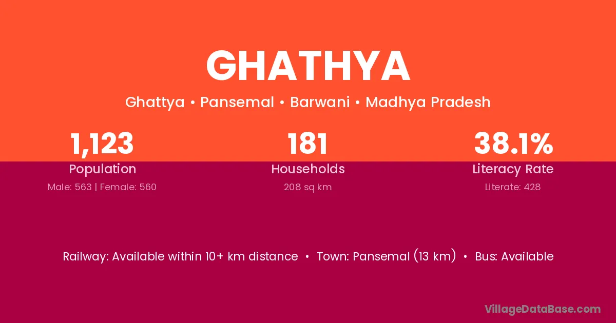 Ghathya village has a total population of 1,123 people, of which 563 are males and 560 are females.
