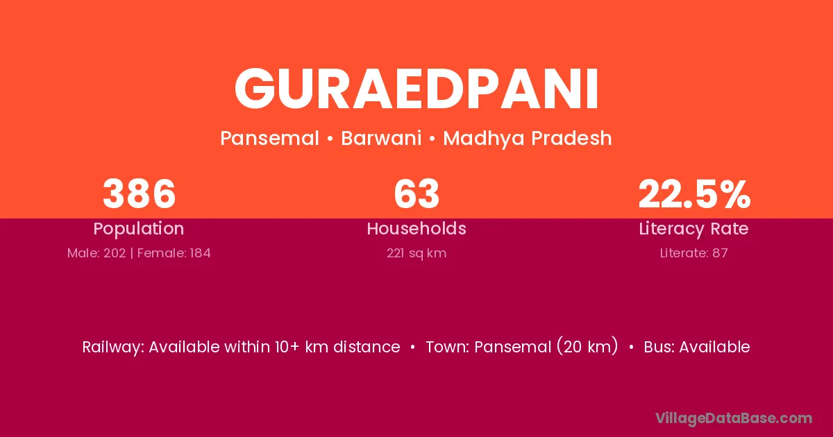 Guraedpani village has a total population of 386 people, of which 202 are males and 184 are females.