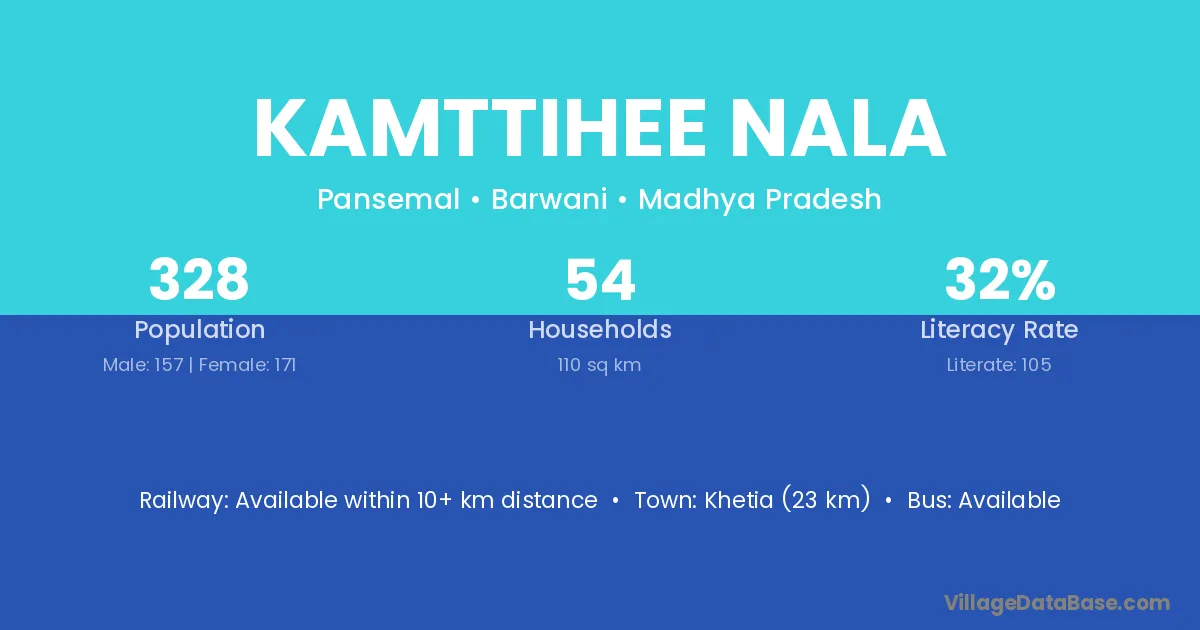 Khetia (23 km) is the nearest town to Kamttihee Nala village for major economic activities and is located approximately 23 km away.