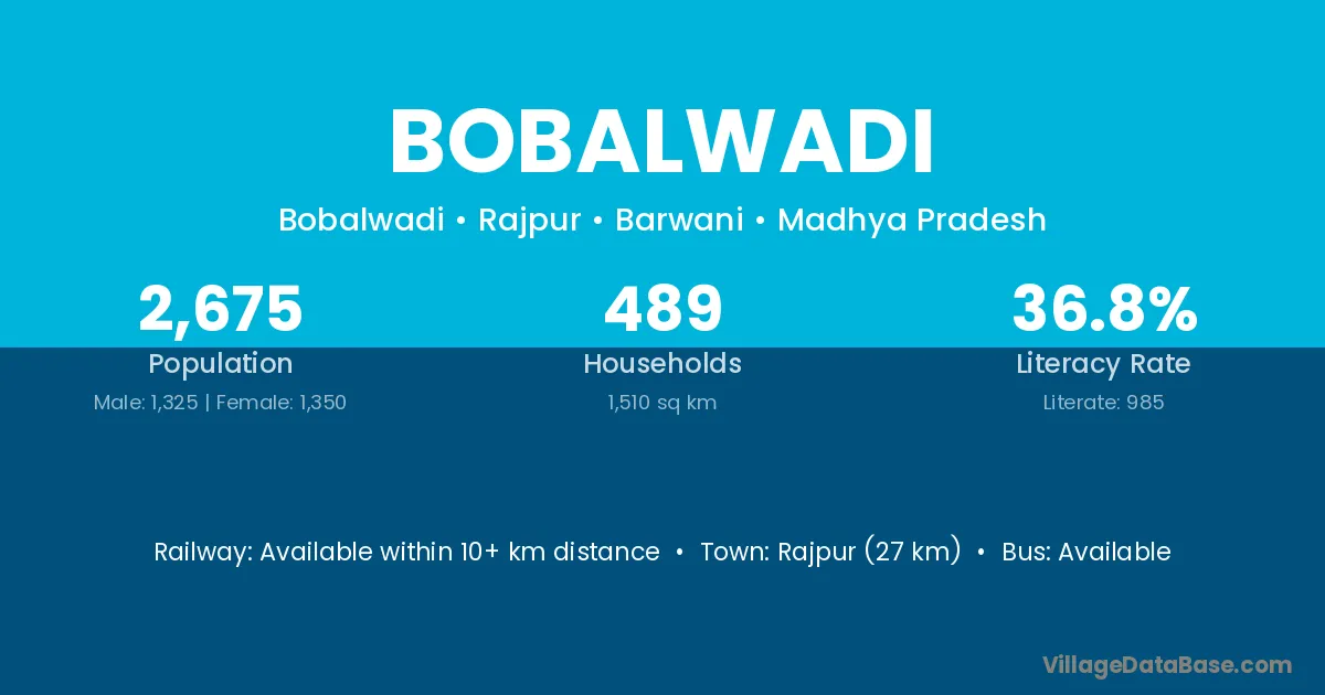 Rajpur (27 km) is the nearest town to Bobalwadi village for major economic activities and is located approximately 27 km away.