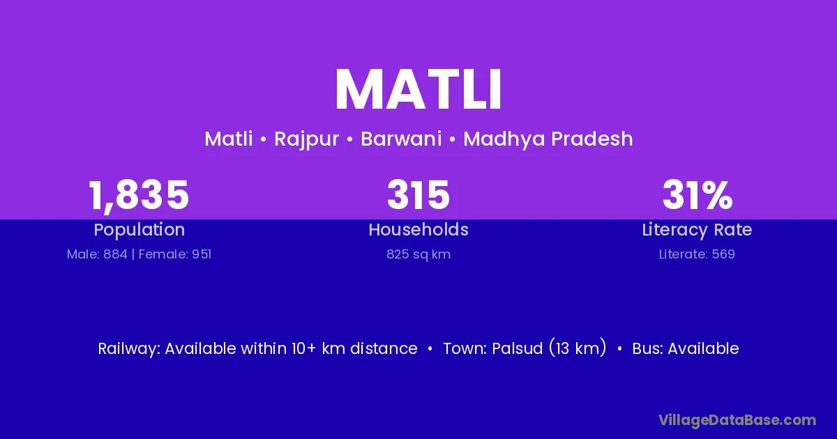 Palsud (13 km) is the nearest town to Matli village for major economic activities and is located approximately 13 km away.