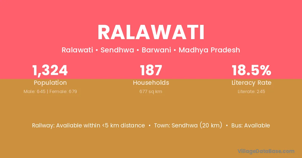 Sendhwa (20 km) is the nearest town to Ralawati village for major economic activities and is located approximately 20 km away.