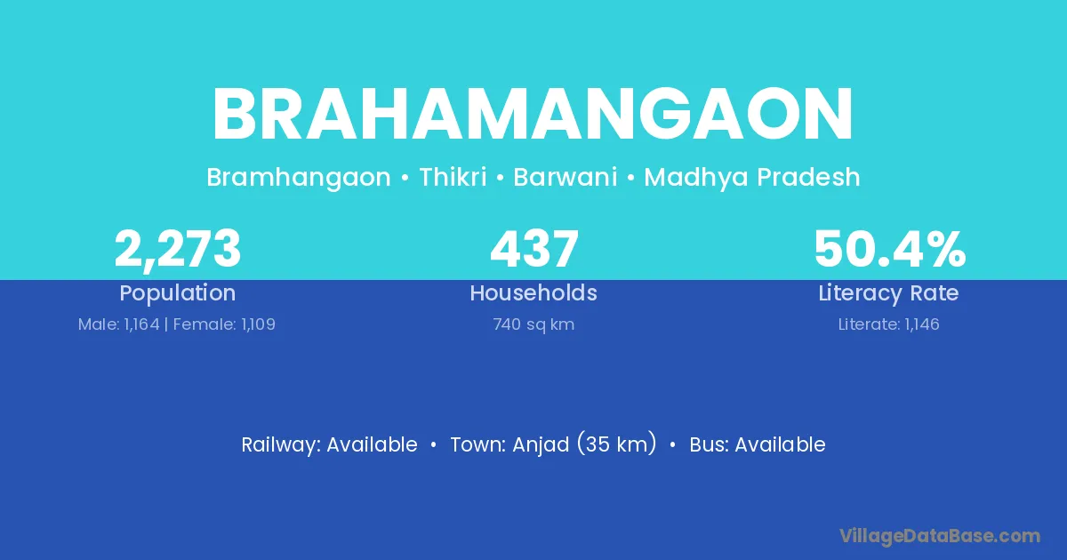 Anjad (35 km) is the nearest town to Brahamangaon village for major economic activities and is located approximately 35 km away.