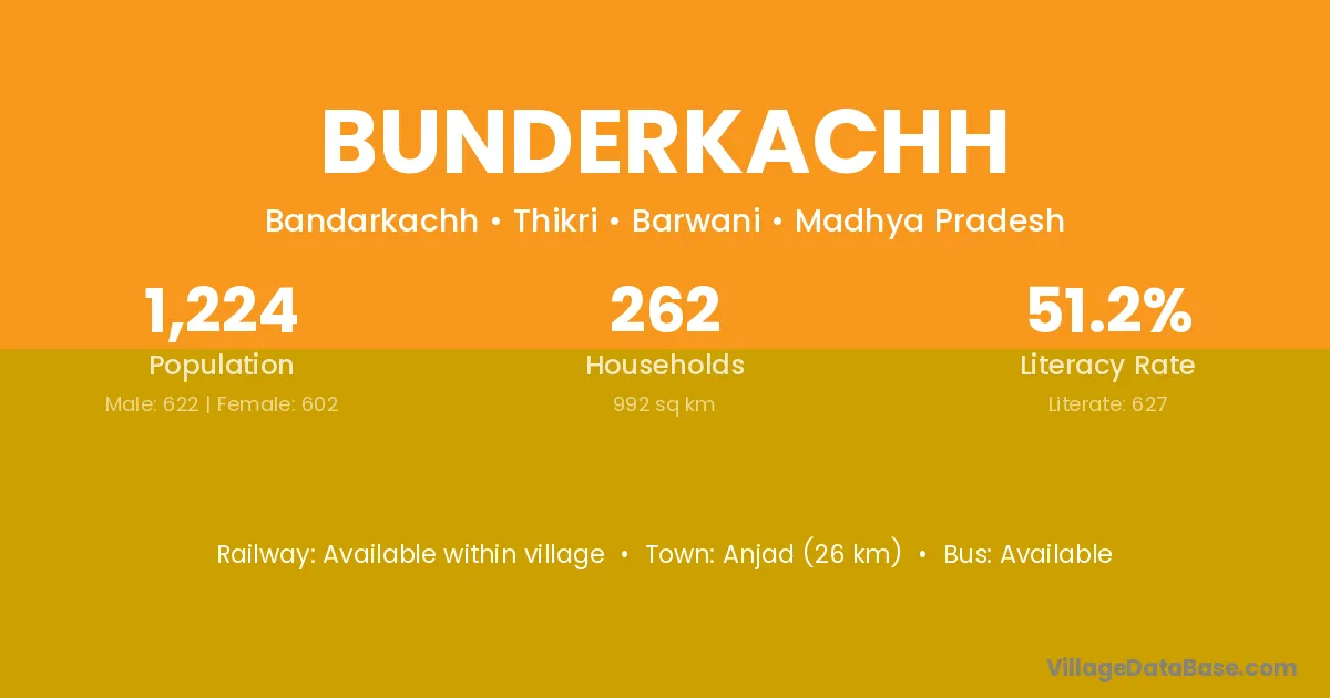 Bunderkachh village has a total population of 1,224 people, of which 622 are males and 602 are females.