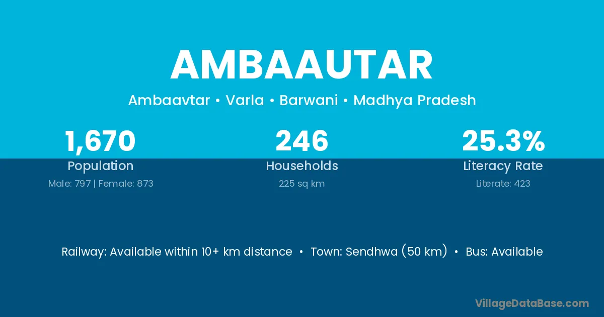 Sendhwa (50 km) is the nearest town to Ambaautar village for major economic activities and is located approximately 50 km away.