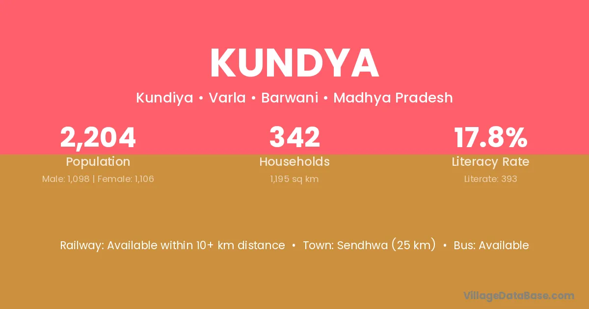 Sendhwa (25 km) is the nearest town to Kundya village for major economic activities and is located approximately 25 km away.