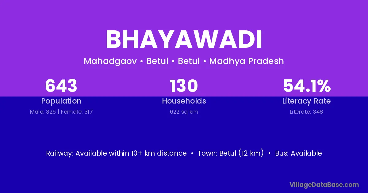 Multai (32 km) is the nearest town to Bhayawadi village for major economic activities and is located approximately 32 km away.