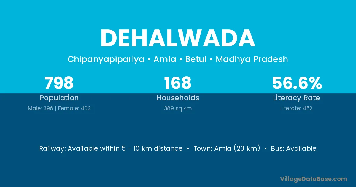 Amla (23 km) is the nearest town to Dehalwada village for major economic activities and is located approximately 23 km away.