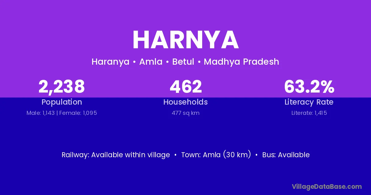 Amla (30 km) is the nearest town to Harnya village for major economic activities and is located approximately 30 km away.