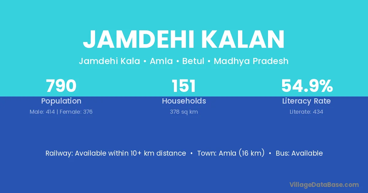Amla (16 km) is the nearest town to Jamdehi Kalan village for major economic activities and is located approximately 16 km away.
