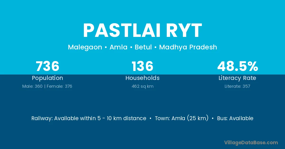Amla (25 km) is the nearest town to Pastlai Ryt village for major economic activities and is located approximately 25 km away.