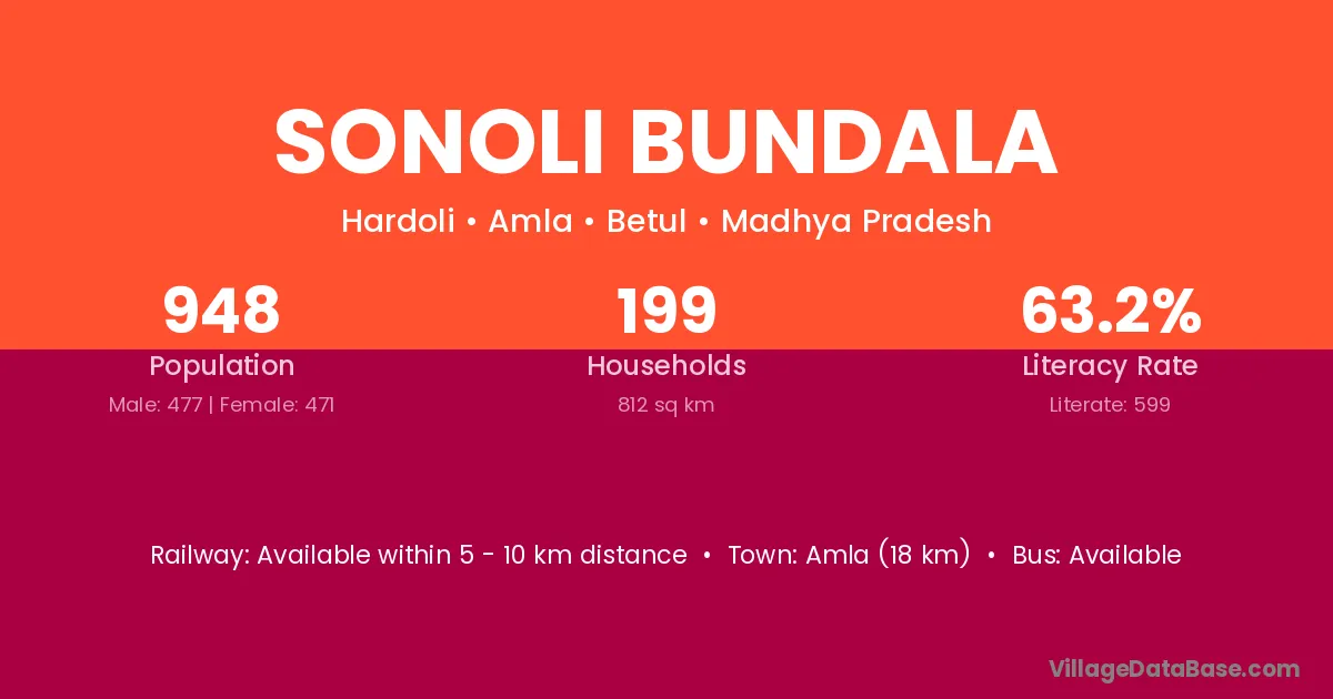 Amla (18 km) is the nearest town to Sonoli Bundala village for major economic activities and is located approximately 18 km away.