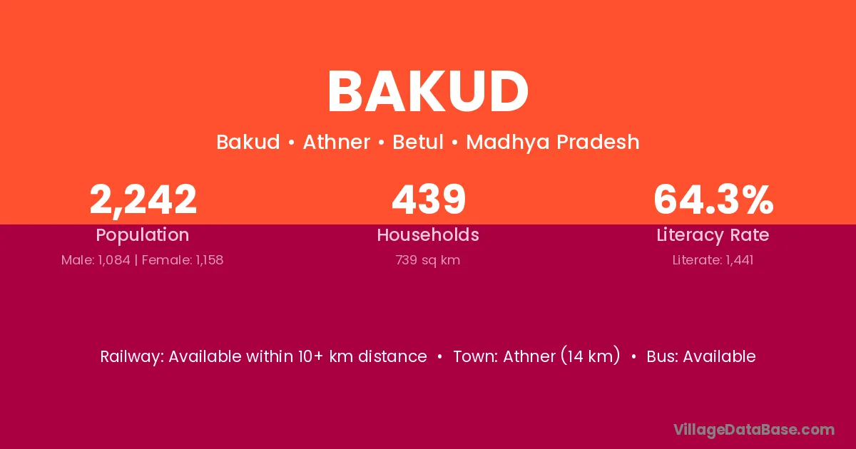 Athner (14 km) is the nearest town to Bakud village for major economic activities and is located approximately 14 km away.