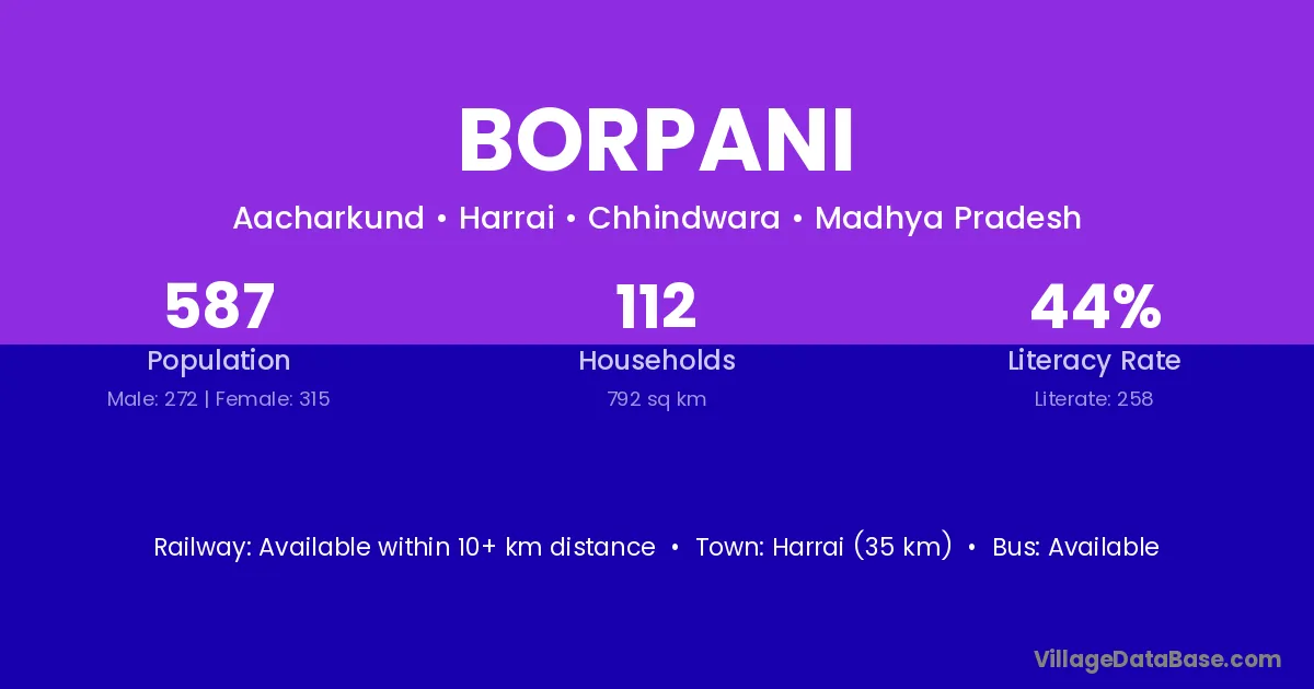 Athner (10 km) is the nearest town to Borpani village for major economic activities and is located approximately 10 km away.