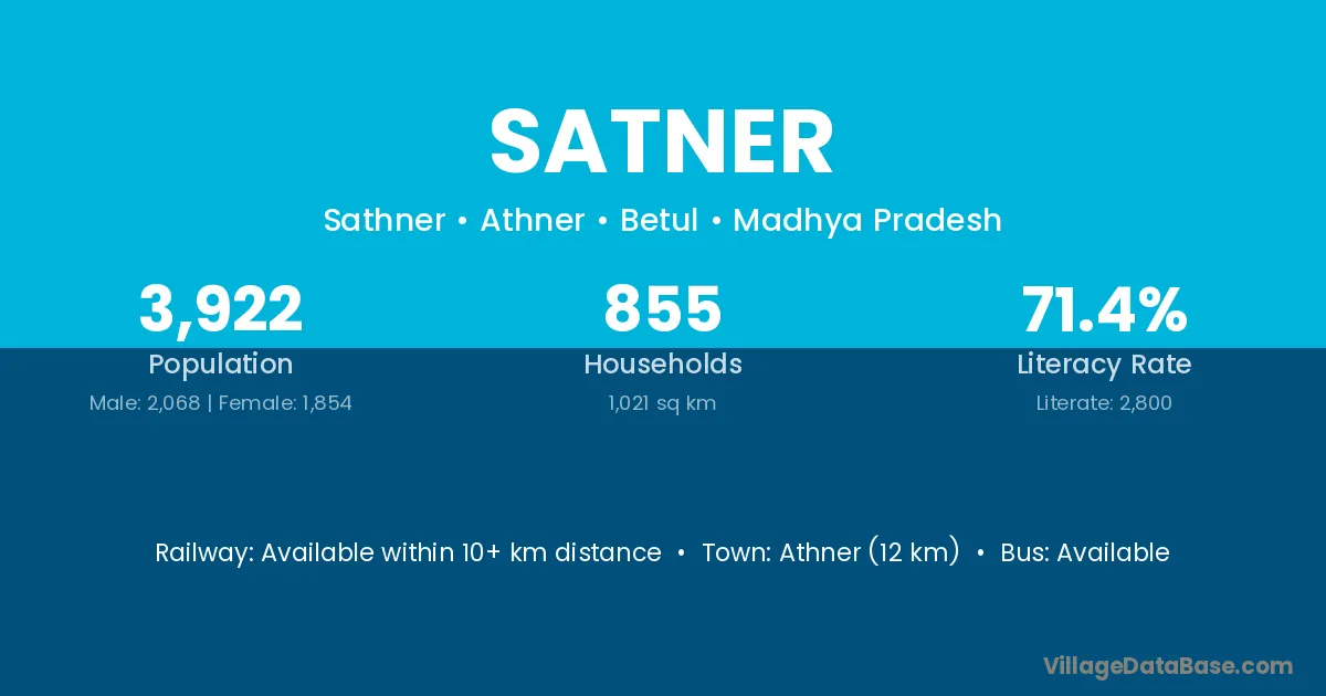 Athner (12 km) is the nearest town to Satner village for major economic activities and is located approximately 12 km away.