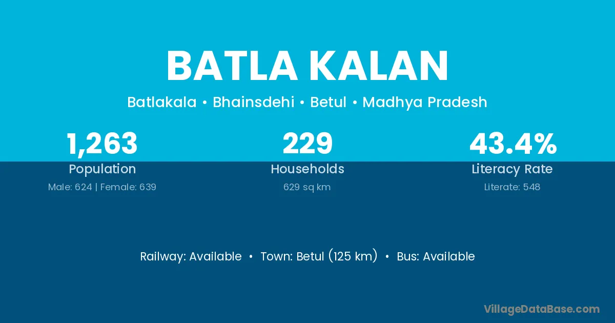 Betul (125 km) is the nearest town to Batla Kalan village for major economic activities and is located approximately 125 km away.