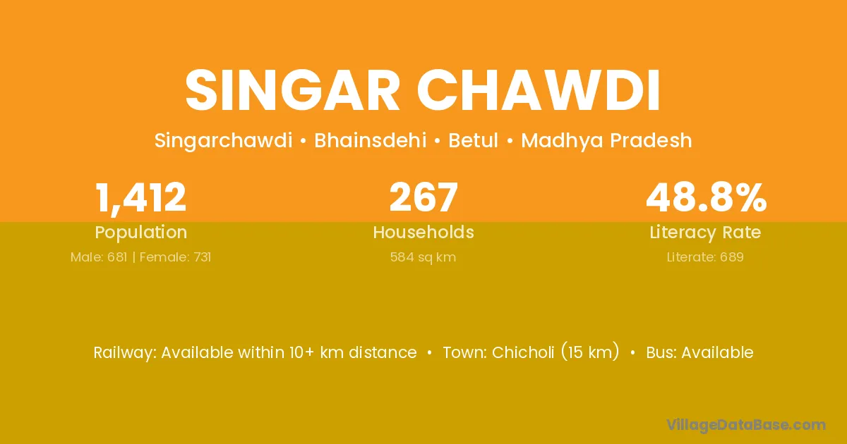 Singar Chawdi village has a total population of 1,412 people, of which 681 are males and 731 are females.