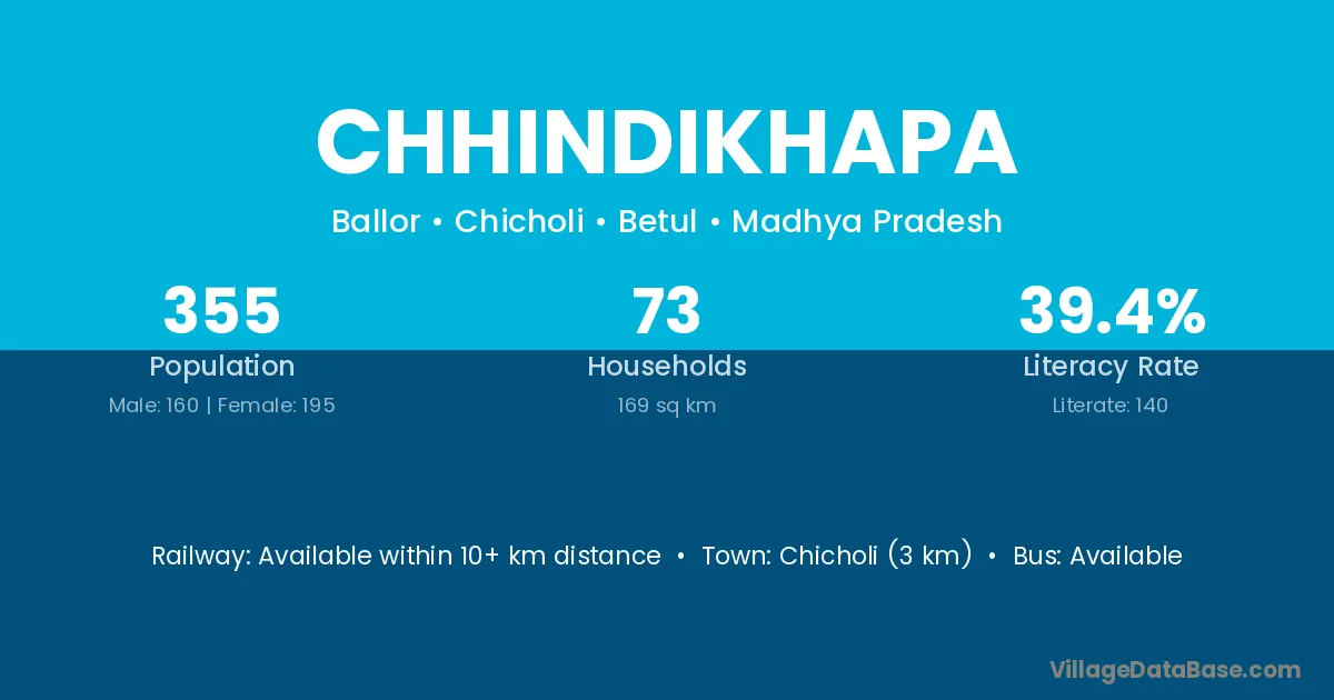Chicholi (3 km) is the nearest town to Chhindikhapa village for major economic activities and is located approximately 3 km away.