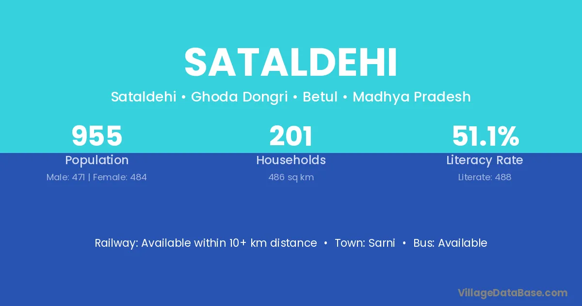 Sataldehi village has a total population of 955 people, of which 471 are males and 484 are females.