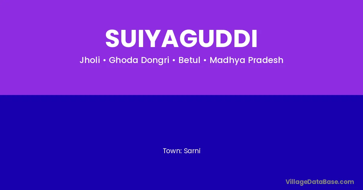 Sarni is the nearest town to Suiyaguddi village for major economic activities