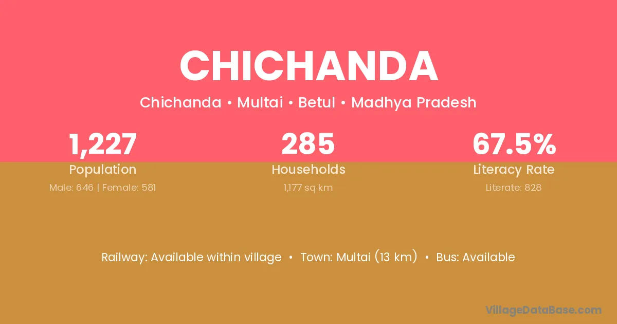 Multai (13 km) is the nearest town to Chichanda village for major economic activities and is located approximately 13 km away.