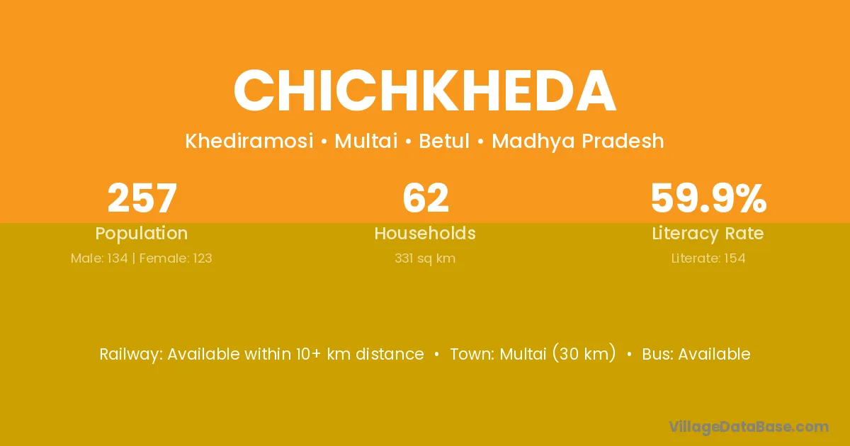 Multai (30 km) is the nearest town to Chichkheda village for major economic activities and is located approximately 30 km away.