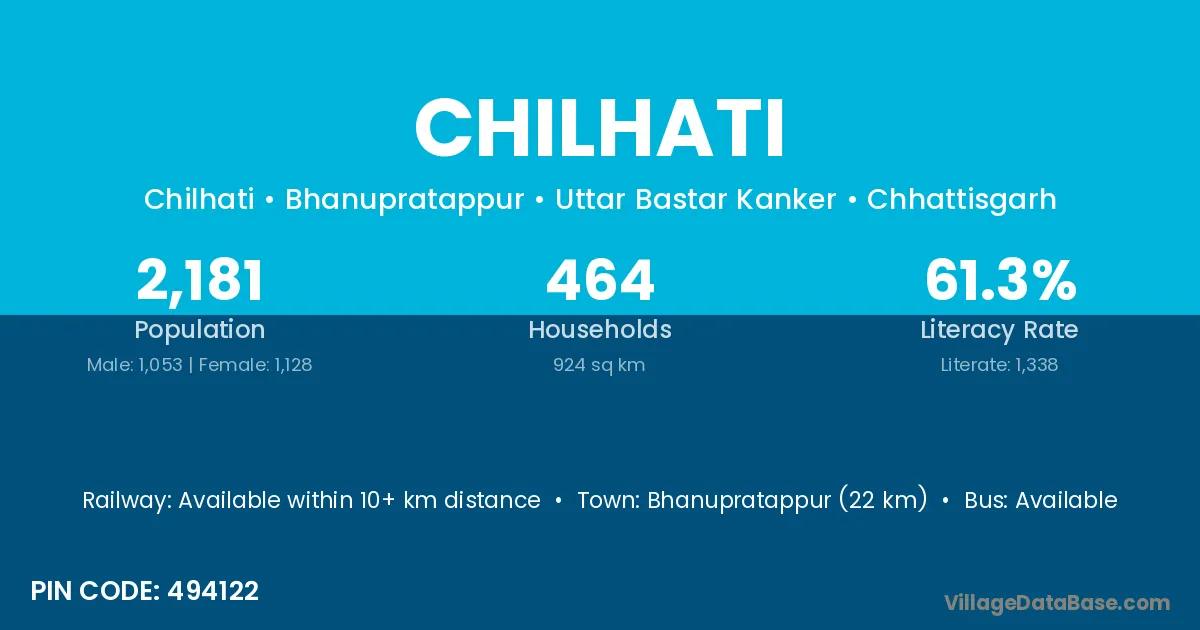 Multai (21 km) is the nearest town to Chilhati village for major economic activities and is located approximately 21 km away.