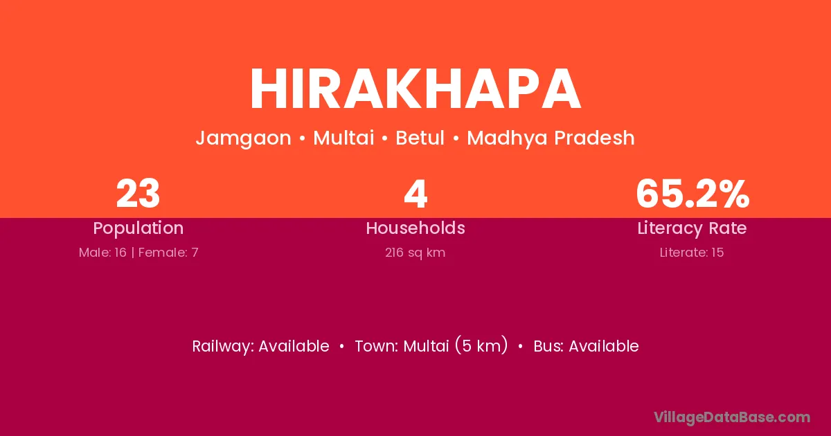 Multai (5 km) is the nearest town to Hirakhapa village for major economic activities and is located approximately 5 km away.